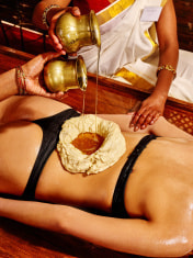 温めたオイルを腰に溜めて癒すインド古代のオイル浴!